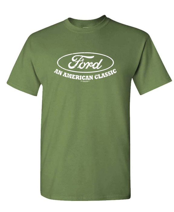 Show your love for a timeless automotive legend with the Ford "An American Classic" T-Shirt. Featuring the iconic Ford oval logo in a vintage distressed print, this tee blends comfort with heritage style. Perfect for car enthusiasts and everyday wear alike, it's made from soft, durable cotton that keeps its shape wash after wash.
